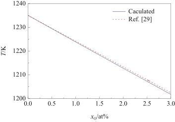 為了驗證這種近似處理的合理性,使用理想溶體近似模型計算Ag-O系的液相線,并將結(jié)果與實驗相圖進(jìn)行比較。