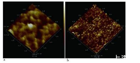 沉積在硅片上的薄膜用原子力顯微鏡間接接觸模式進行檢測,范圍由大到小進行掃描,圖像由NanoScope Analysis軟件進行處理。