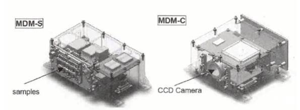 日本計(jì)劃在SLATS衛(wèi)星上搭載環(huán)境效應(yīng)探測器,進(jìn)行空間環(huán)境的監(jiān)測及材料暴露試驗(yàn),這是首次在50 km軌道上開展材料暴露試驗(yàn)。該暴露試驗(yàn)通過兩個(gè)搭載模塊實(shí)施,分別為MDM-S和MDM-C(MDM為MateriasDegradation Monitor的縮寫),其中MDM-S是一個(gè)包含9種材料被動暴露試驗(yàn)的樣品盒,而MDM-C是CCD,用于對暴露試驗(yàn)中樣品的退化情況進(jìn)行拍照。