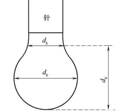 式中,γ為界面張力,mN/m;,Δρ為兩相密度差,kg/m3;g為重力加速度,g=9.80 m/s2;de為懸滴最大直徑,m。油滴尺寸如圖1標注,ds為距油滴頂點垂直距離為de處油滴截面直徑,m。1H可由Andreas等建立的函數(shù)表得到。