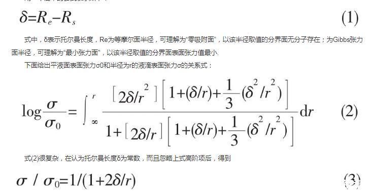 1949年,Tolman在研究表面張力與液滴大小關(guān)系時(shí)引入了后來被稱為托爾曼長(zhǎng)度的物理量,使問題進(jìn)入定量研究階段。