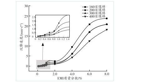 圖8煤塵沉降速度與EMI質量分數的關系