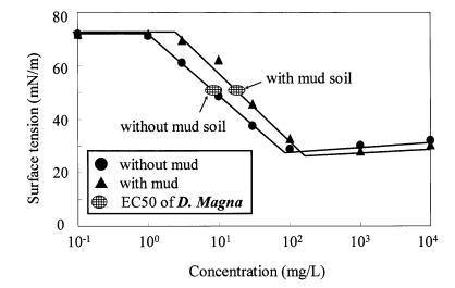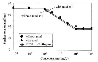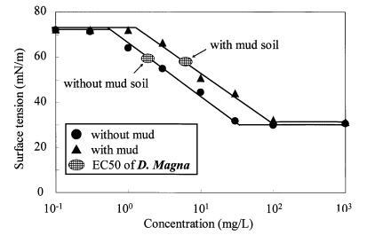 圖 11 泥土存在對地表的影響 LAS 和有毒表面張力的張力曲線 Daphnia Magna 的價(jià)值。