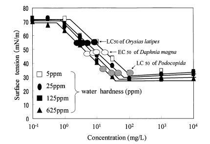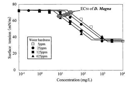圖 9 水硬度對表面張力的影響 烷基硫酸鹽和有毒表面張力曲線 Daphnia Magna 的價(jià)值。