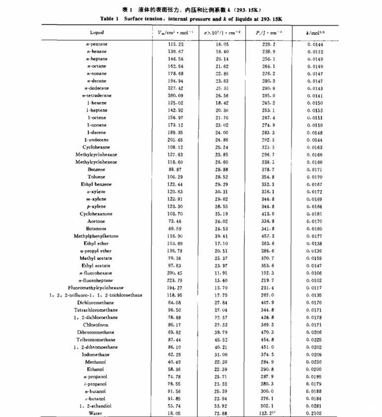 > 不同溫度下純有機物液體表面張力估算方法及關聯方程(一)