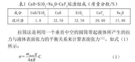 拉筒法和靜滴法測定連鑄結(jié)晶器保護(hù)渣表面張力(一)