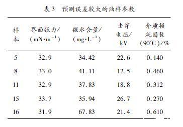 表3預測誤差較大的油樣參數
