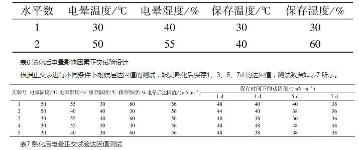 2.2熟化后電暈工藝對(duì)表面張力的影響因素