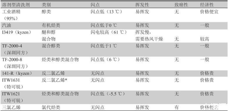根據前面論述,目前沒有單一的一種溶劑或工藝方法可以適用于所有的清洗工藝應用。也沒有一種溶劑既滿足高閃點,易揮發,低毒性,又滿足助焊劑的清洗能力強,符合環境要求,經濟性好的溶劑清洗劑。所以在制定手工清洗工藝方案時要結合本企業實際情況,考慮電子組件上材料的兼容性、經濟性、清洗效果、環保等要求,選擇相適應的溶劑和清洗方法,重點是材料兼容性和清洗效果。綜上所述,提出以下具體的工藝方案。