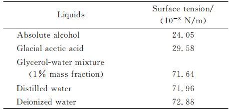 表1實(shí)驗(yàn)液體的表面張力