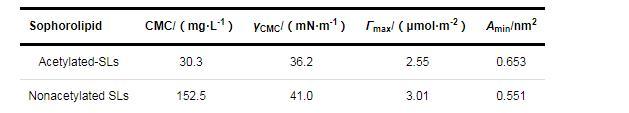 表4乙酰化SLs和去乙酰化SLs在氣液界面上的吸附參數(shù)