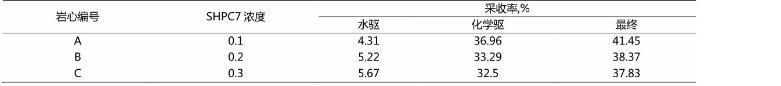 采用相同的巖心,加入不同濃度的SHPC7表明活性劑,從而得到不同濃度下對(duì)低滲透油層的驅(qū)油效果。