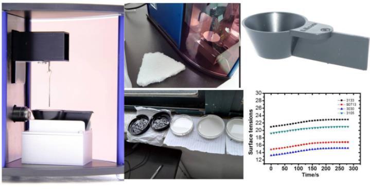 圖1測量涂料的表面張力裝置實驗圖及涂料樣品的表面張力數據