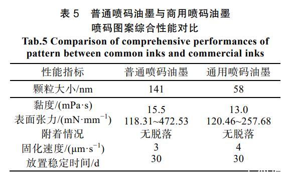 表5普通噴碼油墨與商用噴碼油墨噴碼圖案綜合性能對比