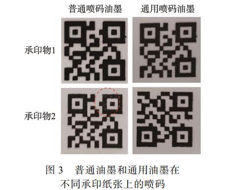 圖3普通油墨和通用油墨在不同承印紙張上的噴碼
