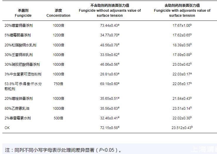 2.3助劑對殺菌劑藥液表面張力的影響