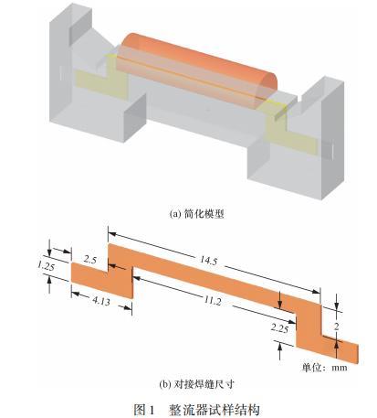 圖1(a)為基于實際釬焊情況的試樣結(jié)構(gòu)簡化模型,橙色部分為釬料涂覆區(qū)域,放置在焊縫上方,材料為鎳基高溫合金;黃色部分為待焊接區(qū)域,該焊縫兩側(cè)表面互相平行,間距為0.2mm;灰色部分為母材,加熱過程中不發(fā)生形變,不與釬料相互溶解。整流器試樣結(jié)構(gòu)對接焊縫尺寸如圖1(b)所示。