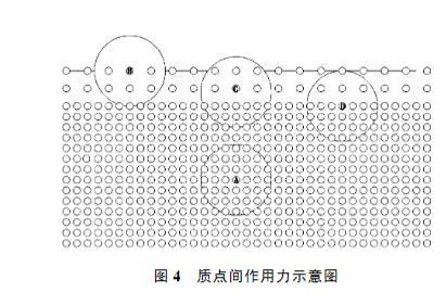 由熔體作用力理論可知,組成熔體的質(zhì)點間存在著作用力。當(dāng)質(zhì)點處于平衡位置時,即質(zhì)點間距r=r0(r0=10?1?)時,引力等于斥力,質(zhì)點間作用力為0;質(zhì)點間距r>r0,作用力為引力;質(zhì)點間距r<r0,作用力為斥力;當(dāng)質(zhì)點間距r>10r0時,引力和斥力均為0,如圖3所示。