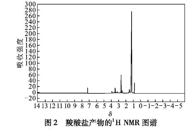 終產物的FTIR數據證明了合成產物中—OH、N—C鍵、N—H鍵、C—H鍵、—COO-、甲基及亞甲基的存在,與目標產物分子結構中的官能團相吻合。