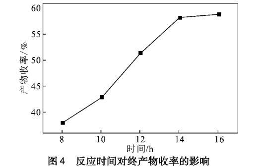 固定N,N-二(3-氯-2-羥基丙烷)丙二胺二乙酸鈉與十二胺投料比為1∶2.2,反應溫度為90℃,考察了反應時間對GAC-312收率的影響,結(jié)果見圖4。