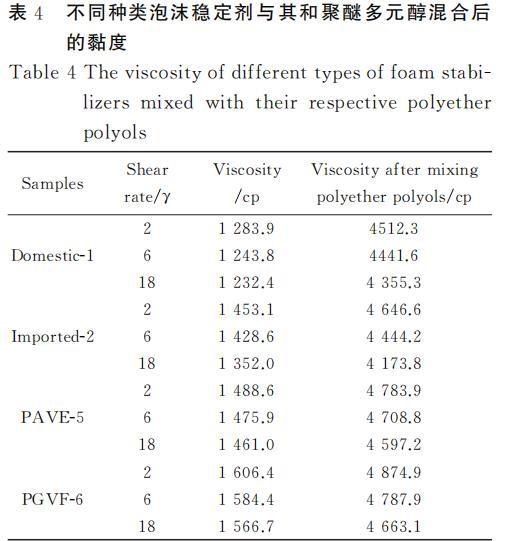 表4不同泡沫穩(wěn)定劑與對(duì)應(yīng)聚醚多元醇混合后的黏度