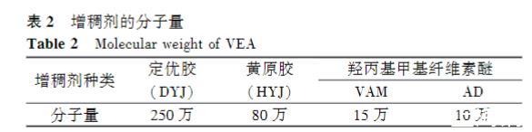 本工作采用多種增稠劑對砂漿的黏度進行調整,分別為天然植物多糖類增稠劑(定優膠和黃原膠)和合成纖維素醚類增稠劑(羥丙基甲基纖維素醚)兩大類,各自的分子量列于表2中。