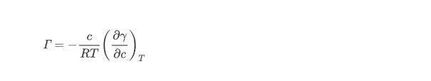 式中,Γ為表面過剩濃度,mol/cm2;c為表面活性劑水溶液濃度,%;R為表面活性劑普氏氣體常數,R=8.315×107;T為溫度,K;γ為界面張力,mN/m;