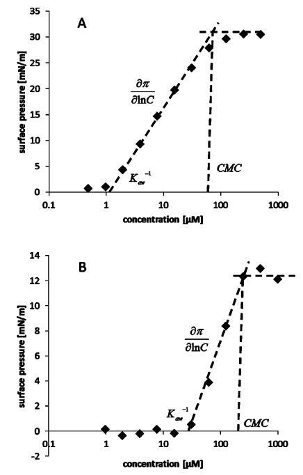 圖3。(A)化合物29和(B)尼群地平的表面壓力分布的代表性示例。虛線和方程描述了表面張力參數的推導過程。