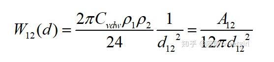 式中d11為物質1的分子間距;d22為物質2的分子間距;d12為物質1和物質2在界面處的分子間距;A11、A22及A12分別為物質1本體內、物質2本體內及物質1與物質2之間的Hamaker常數。