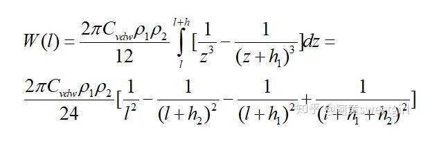 同樣,若取l為兩相界面處分子間的距離d12,且兩半無限體為兩種不同的物質時,則互作用勢變為