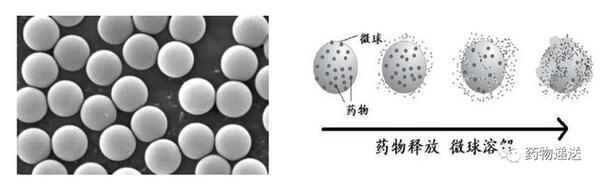 微球(Microrspheres)是指粒徑在微米級(jí)別的球體,藥物遞送領(lǐng)域的載藥微球,則指將藥物溶解或分散于聚合物材料中所形成的微小球體或類球體,粒徑一般在1~250μm范圍內(nèi),屬于基質(zhì)型骨架微粒。