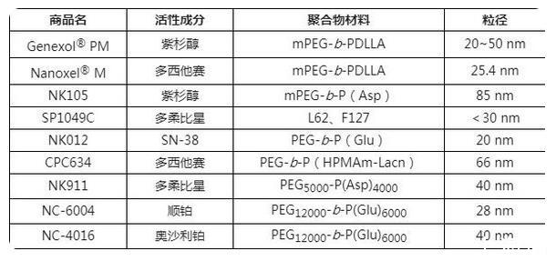 Genexol PM以聚乙二醇-聚乳酸(mPEG-b-PDLLA)為載體材料,粒徑在20~50nm,不使用聚氧乙烯菌麻油(Cremophor EL)降低發(fā)生嚴(yán)重過(guò)敏性反應(yīng)的可能性;Paclical則使用新型輔料XR-17(維生素A的類似物),XR-17能與水溶性物質(zhì)形成膠束,包裹紫杉醇后能自組裝形成粒徑在20~60nm的膠束,將包載的藥物分子遞送至靶標(biāo)后,輔料在體內(nèi)被快速代謝清除。
