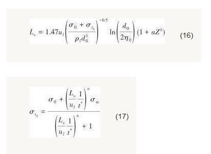式中,η和η0分別為射流表面波動振幅和初始振幅,m。假設表面波振幅發展至射流半徑時,射流發生破裂。因此,射流破裂長度可以表示為[9]: