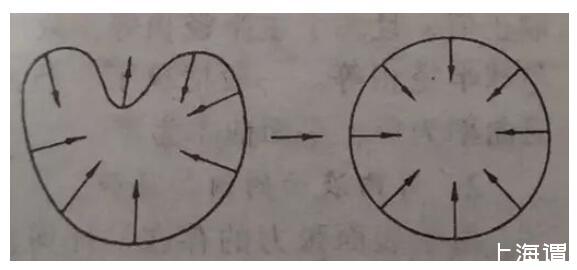 當(dāng)你吹泡泡的時(shí)候,無(wú)論用什么泡泡圈,吹出來的泡泡都是近球形的,童鞋們會(huì)懊惱為什么:不能吹個(gè)泡泡都是愛你的形狀呢?從受力分析而言,當(dāng)泡泡為不規(guī)則形狀時(shí),其相鄰的兩點(diǎn)曲率不一樣,則表面張力方向不一樣,根據(jù)受力分析,水會(huì)向合力的方向流動(dòng),最后平衡狀態(tài)為相鄰兩點(diǎn)受力一致,曲率一致。推廣到整體,就是一整個(gè)球體形狀的形成。