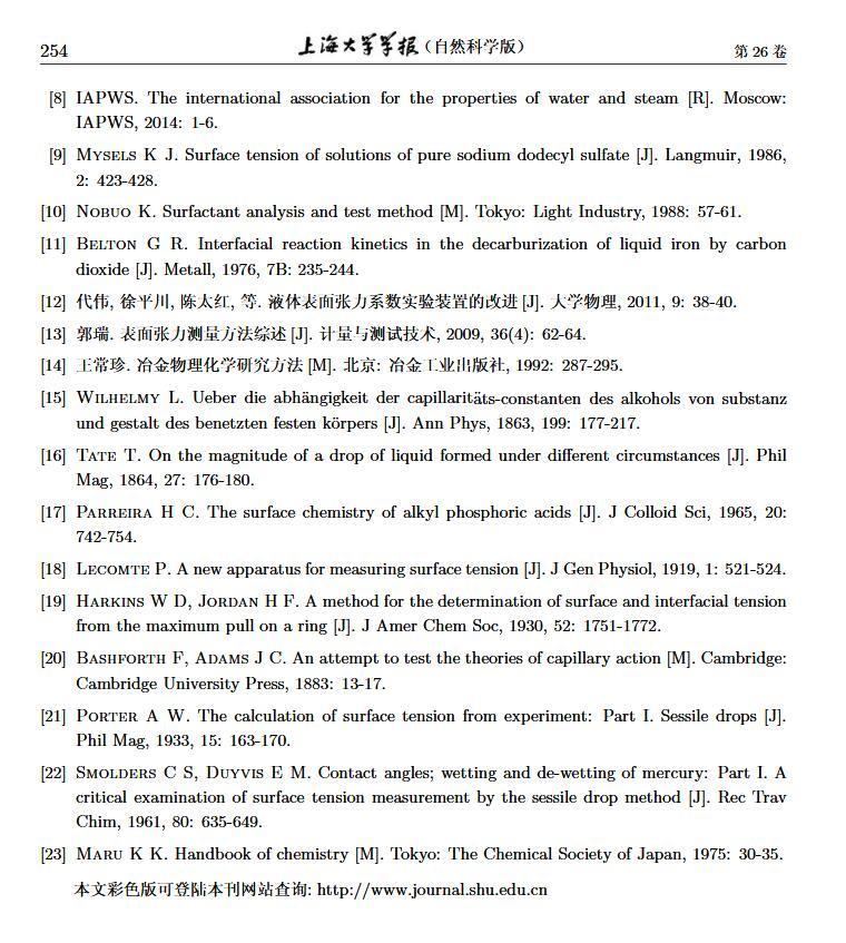 > 一套低溫、高壓懸滴法表面張力實驗測量系統實踐效果(三)