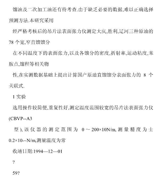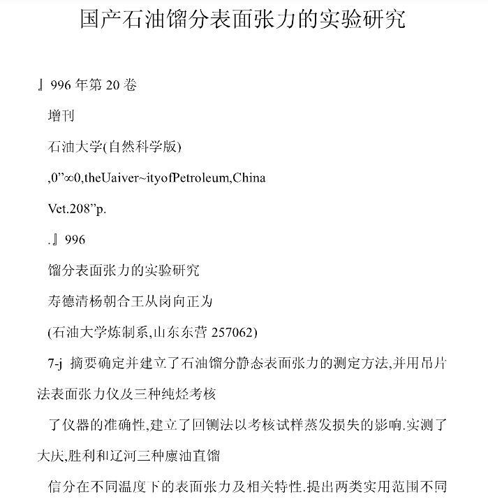 國產石油餾分表面張力的實驗研究