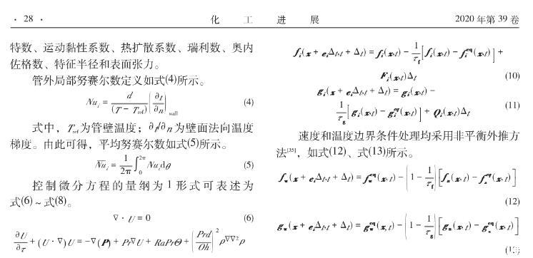【摘要】:采用格子-玻爾茲曼方法 (LBM)構建了考慮表面張力影響下封閉腔體內加熱圓柱外自然對流數(shù)學模型。在分別對自然對流與表面張力模型模擬驗證的基礎上,探究了液固表面張力與重力場下浮升力同時作用下加熱圓柱外流體自然對流的傳熱特性。結果表明,在給定Ra數(shù)下(103≤Ra≤106),隨著表面張力的增大(Oh數(shù)減小),封閉腔體內管外自然對流擾動會加劇,流型會變復雜,壁面換熱效率有明顯提高。