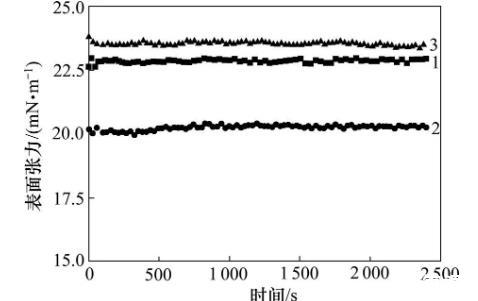 圖1 120℃和4 MPa下稠油動態(tài)表面張力變化圖